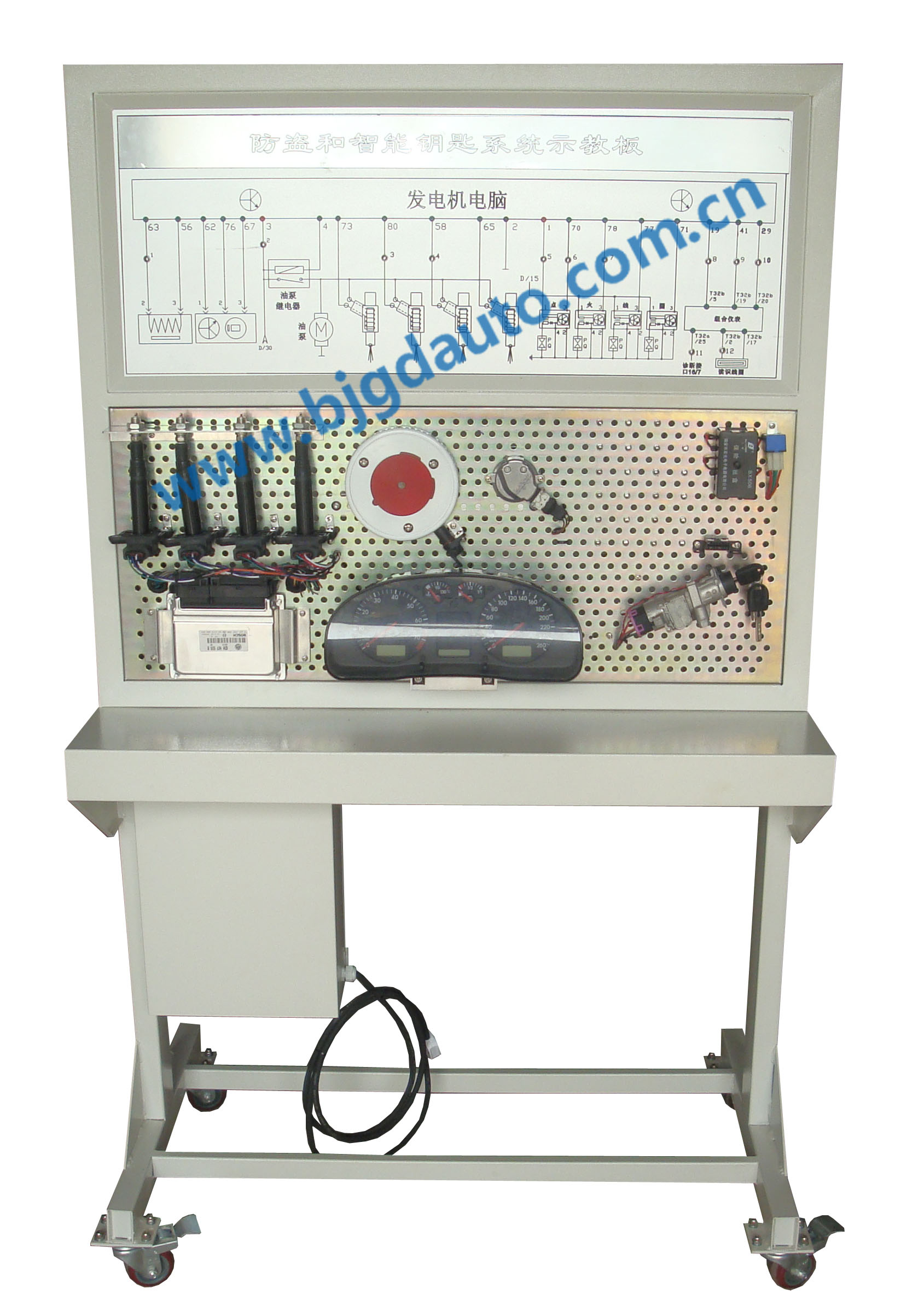 設(shè)備采用原車汽油發(fā)動機防盜系統(tǒng)器件組成,包括:發(fā)動機電腦、防盜模塊、讀識線圈、點火開關(guān)、診斷接口、組合儀表、曲軸位置傳感器、凸輪軸位置傳感器、點火線圈、火花塞等。外加系統(tǒng)主要包括: 故障設(shè)置系統(tǒng)、故障顯示裝置、檢測端子以及安全防護裝置等。本臺架可以完整展示防盜系統(tǒng)的組成、結(jié)構(gòu)和工作原理,可以進行系統(tǒng)常見故障的模擬、診斷和檢測實操訓(xùn)練,提高學生分析和解決實際問題的能力,適合中高等汽車院校與培訓(xùn)機構(gòu)對學員進行車身電器系統(tǒng)的教學需要。
